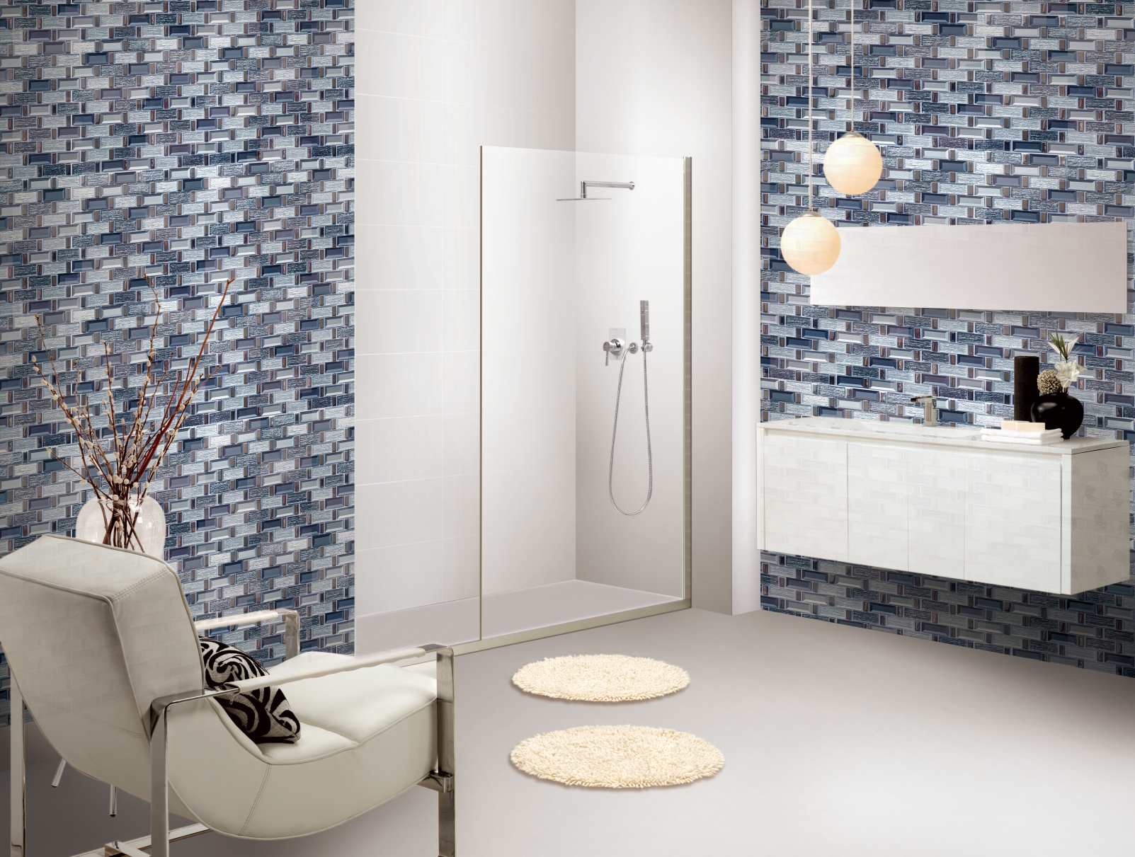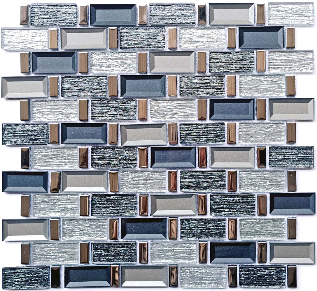 Renueva el aspecto de tu hogar con este mosaico de vidrio. Presenta tonos grises y detalles metálicos que reflejan la luz, perfectos para duchas, paredes decorativas y protectores contra salpicaduras. Esta loseta larga y lineal se puede instalar dentro de espacios residenciales o comerciales.
