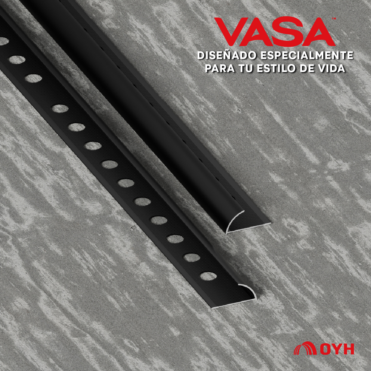 VASA® Perfiles de aluminio tipo C Black Polished